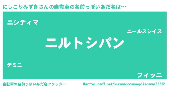 | ポケモン風あだ名 | 『ヒニシコリミズキ』『ニシチュウ』 |
