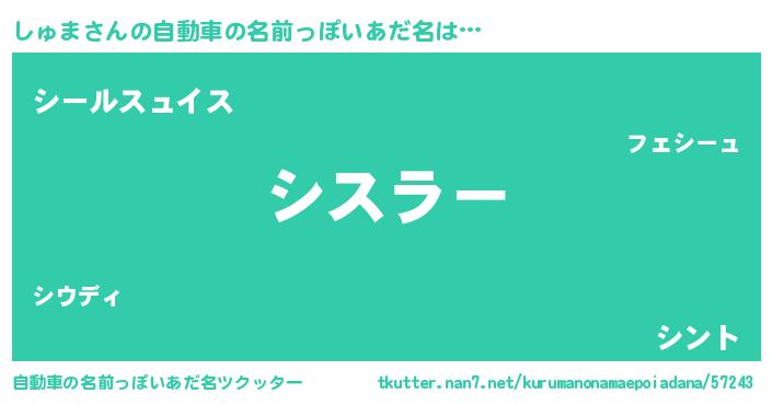 | 肩書あだ名 | 『しゅま国家主席』『しゅま少尉』 |