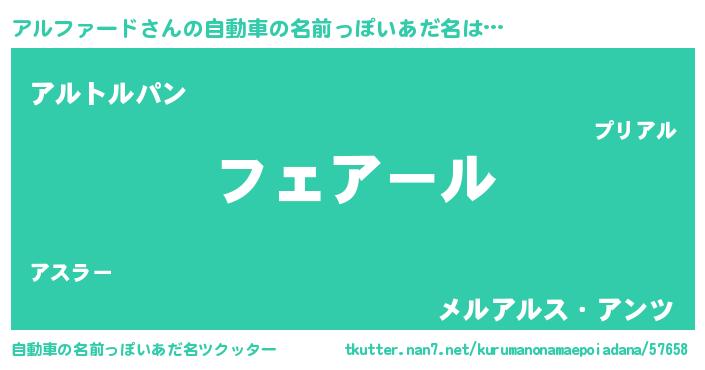 | 男性向けラノベタイトル風あだ名 | 『冴えないアルファードの育てかた』 |