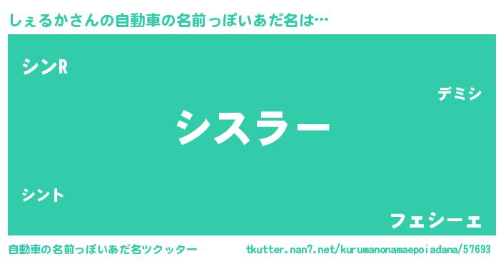 | 欧米人風あだ名 | 『しぇるかクリステル』 |