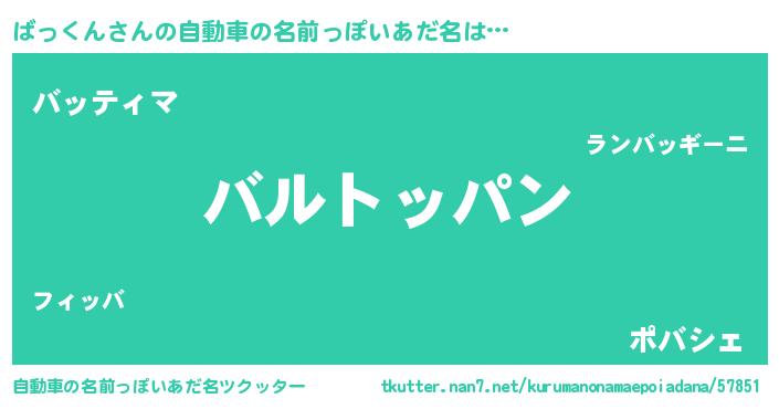 ばっくんさんの自動車の名前っぽいあだ名をツクッター!