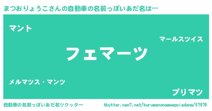 | 欧米人風あだ名 | 『まつおりょうこ・ステッグマイヤー』 |