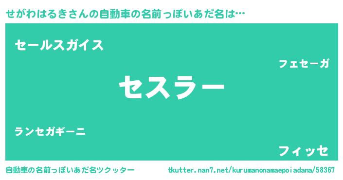 | 意味不明あだ名 | 『せがわはるきフォーエバー』 |