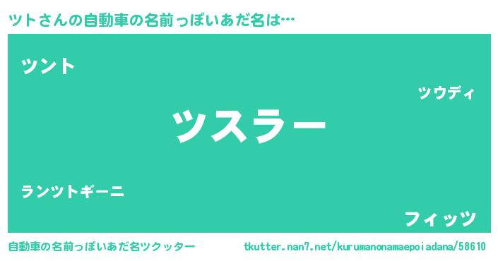 | ポケモン風あだ名 | 『ツトダネ』『ヒツト』『ツックウザ』 |