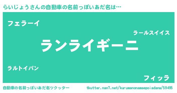 | 男性向けラノベタイトル風あだ名 | 『らいじょうに滅ぼされるだけの簡単なお仕事です』 |