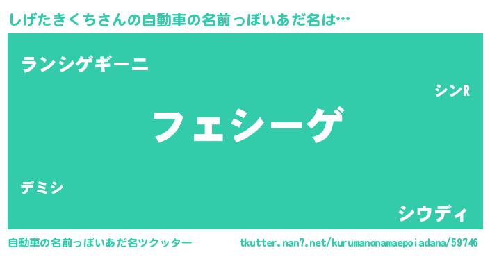 | 意味不明あだ名 | 『住所不定無職しげたきくち(62歳)』 |