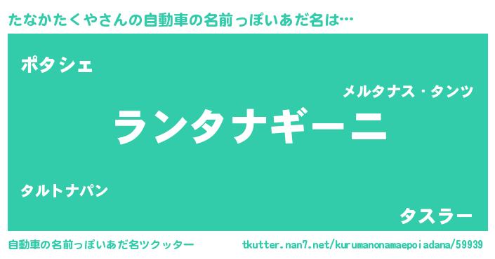| 欧米人風あだ名 | 『アンジェラ・たなかたくや』 |
