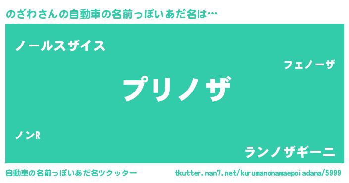 のざわさんの自動車の名前っぽいあだ名は… 『プリノザ』『ノールスザイス』『ランノザギーニ』 ツクッター #自動車の名前っぽいあだ名ツクッター http://tkutter.nan7.net/kurumanonamaepoiadana/5999/