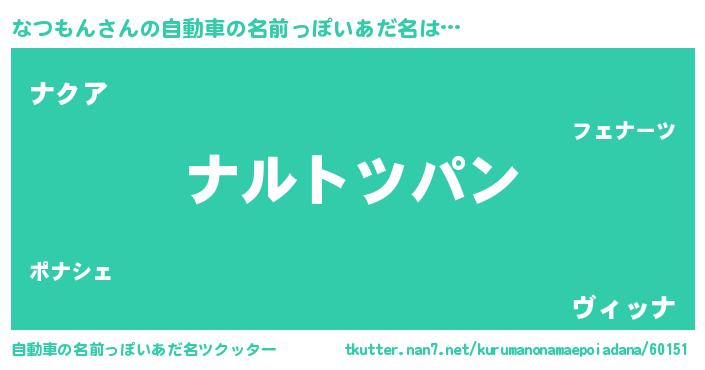 | 女子向けラノベタイトル風あだ名 | 『なつもんの卵を拾いまして』 |