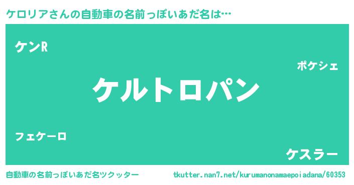 | 意味不明あだ名 | 『とにかく怪しいケロリア』 |