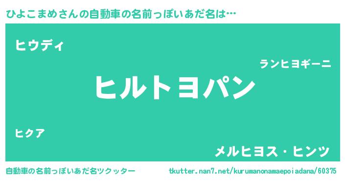 | 意味不明あだ名 | 『とにかく怪しいひよこまめ』 |