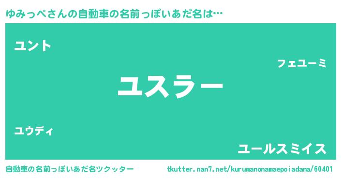 | 欧米人風あだ名 | 『ゆみっぺクリステル』 |