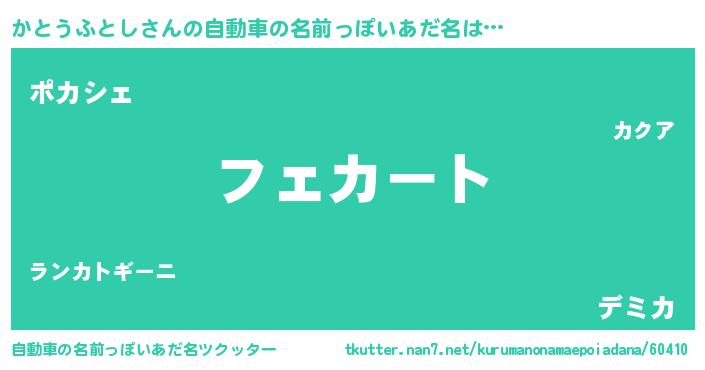 | 欧米人風あだ名 | 『かとうふとし・ステッグマイヤー』 |