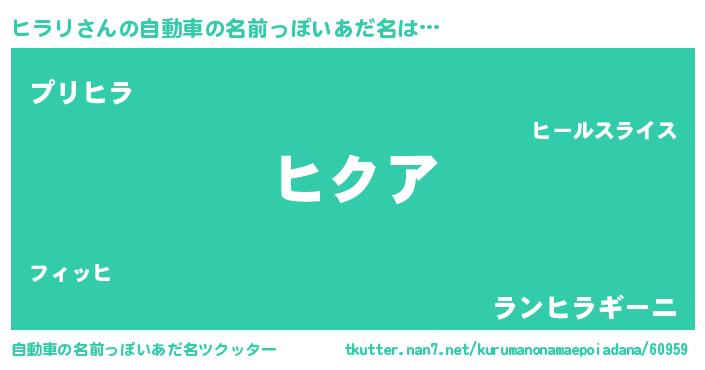 | 意味不明あだ名 | 『ヒラリフォーエバー』『ペロリンヒラリ』 |