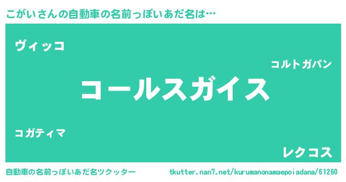 ヘコむあだ名 | 『こがい(笑)』『こがを』『こがにー』 |
