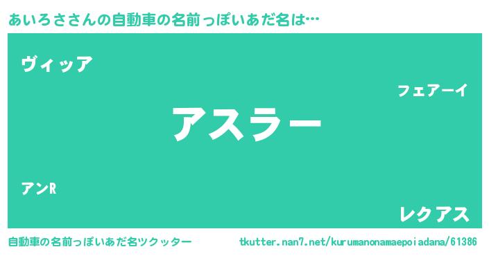 あいろささんの自動車の名前っぽいあだ名をツクッター!