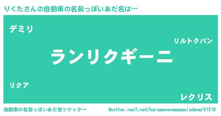りくたさんの自動車の名前っぽいあだ名をツクッター!