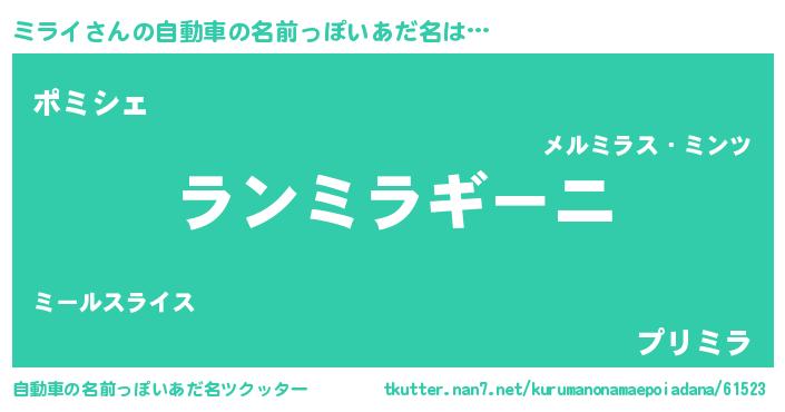 | ピコ太郎風あだ名 | 『ミコ次郎』『ピミ太郎』『ミラ三郎』 |