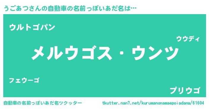 | 意味不明あだ名 | 『自称うごあつ』『ペロリンうごあつ』 |