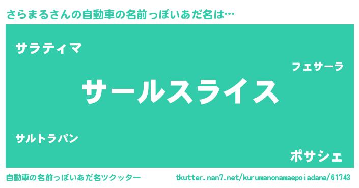| 男性向けラノベタイトル風あだ名 | 『転生したらさらまるだった件』 |