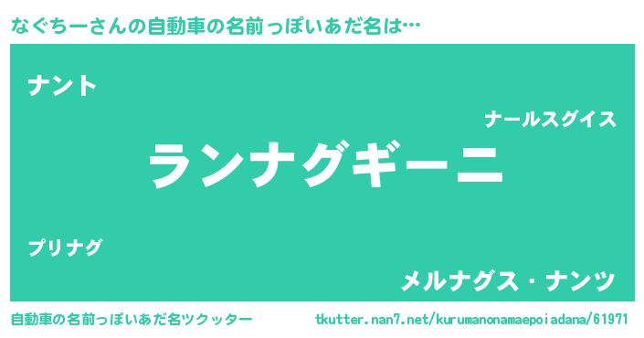 | ヒーロー風カッコイイあだ名 | 『幻影騎士ナグ』『最強戦士ナグチー』 |