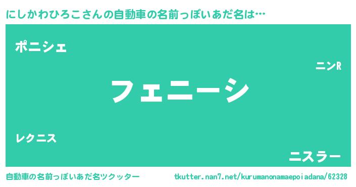 | ヒーロー風カッコイイあだ名 | 『仮面ニシダー』『ネオニシカワヒロコ』 |