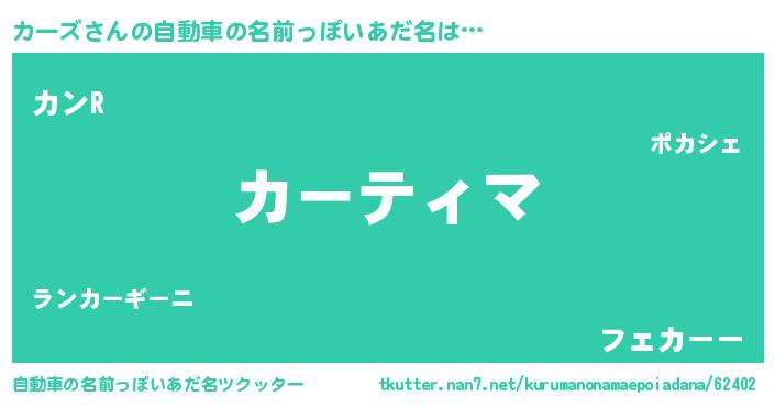 | 男性向けラノベタイトル風あだ名 | 『カーズアートオンライン』 |