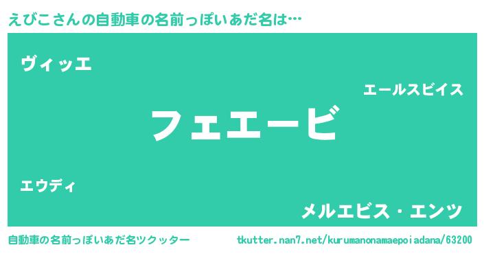 | 欧米人風あだ名 | 『えびこ・ステッグマイヤー』 |