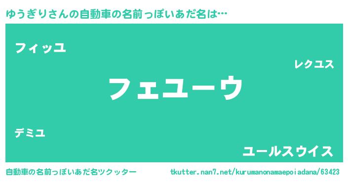 | ヘコむあだ名 | 『ゆうぎり(遠い目)』『ゆうっふぃ~』 |