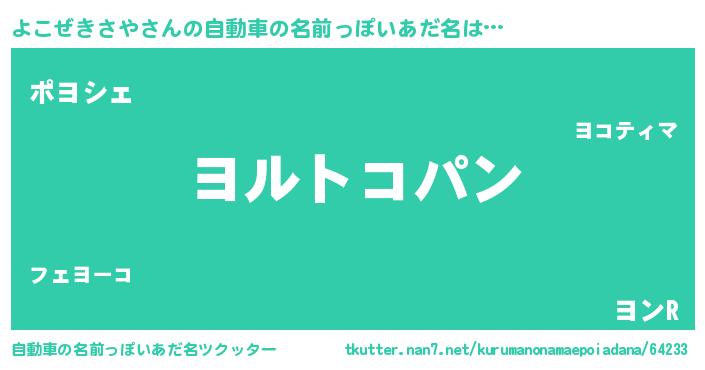 | 欧米人風あだ名 | 『ウサインよこぜきさや』 |