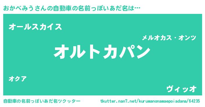 | 欧米人風あだ名 | 『ウサインおかべみう』 |
