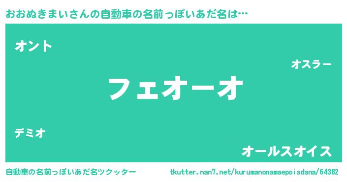 | ヒーロー風カッコイイあだ名 | 『幻影騎士オオ』『ネオオオヌキマイ』 |