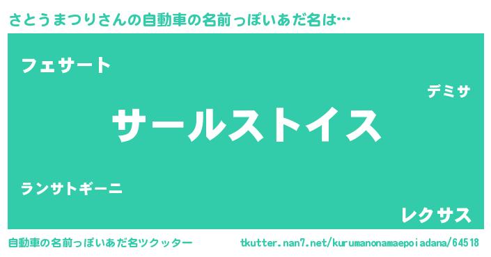 | 男性向けラノベタイトル風あだ名 | 『転生したらさとうまつりだった件』 |