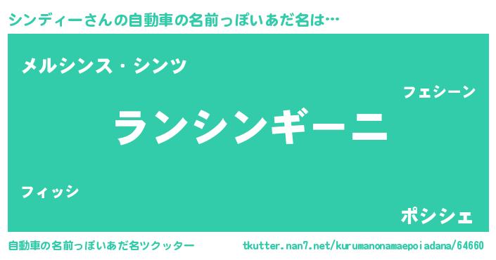 | 男性向けラノベタイトル風あだ名 | 『シンディーに滅ぼされるだけの簡単なお仕事です』 |
