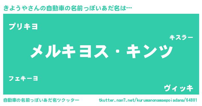 | 男性向けラノベタイトル風あだ名 | 『Re:きようやから始める異世界生活』 |