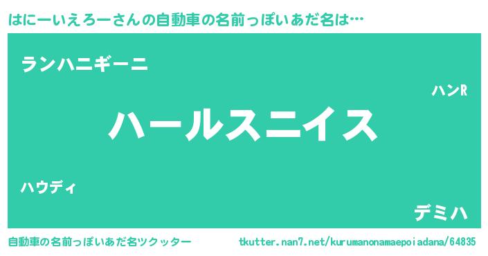 | 意味不明あだ名 | 『なめこ科はにーいえろー属』 |