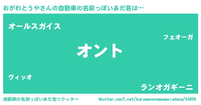 | 男性向けラノベタイトル風あだ名 | 『おがわとうやの嫁は女の子じゃないと思った?』 |