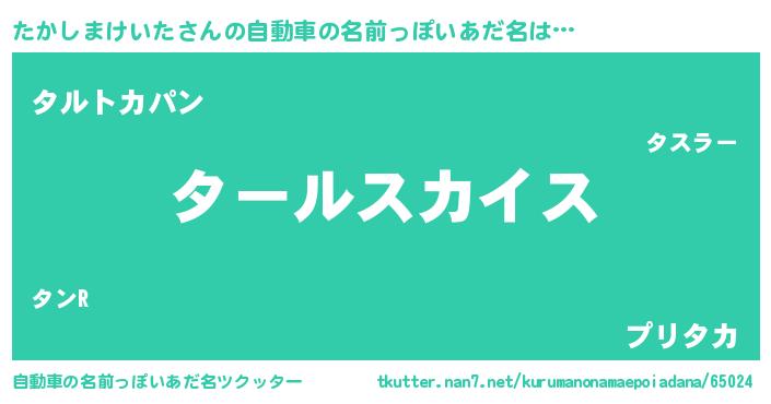 | 男性向けラノベタイトル風あだ名 | 『タカシマケイタスレイヤー』 |