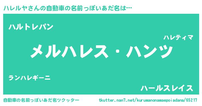 | 男性向けラノベタイトル風あだ名 | 『Re:ハレルヤから始める異世界生活』 |