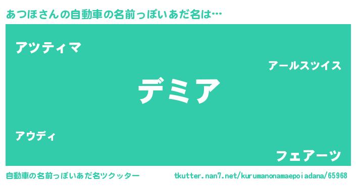 | 胡散臭い通販商品みたいなあだ名 | 『絶対に幸福をもたらす水素水…その名も「あつほ」』 |