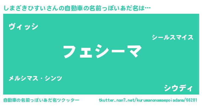 | 欧米人風あだ名 | 『しまざきひすい・ステッグマイヤー』 |