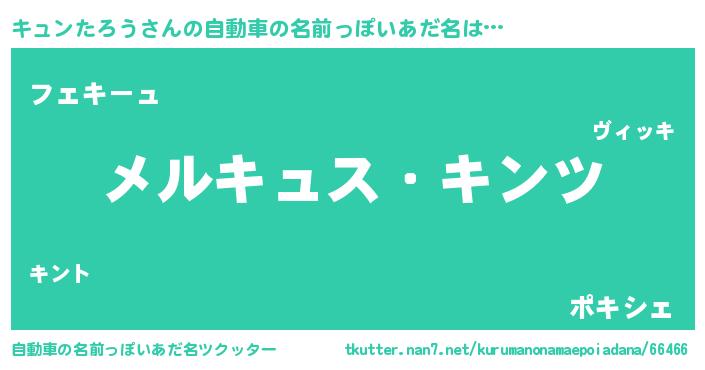 | 男性向けラノベタイトル風あだ名 | 『Re:キュンたろうから始める異世界生活』 |