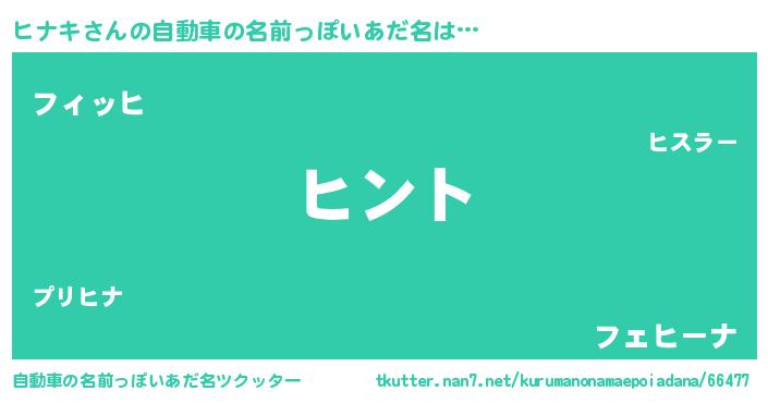| ポケモン風あだ名 | 『ヒヒナキ』『ヒックウザ』 |