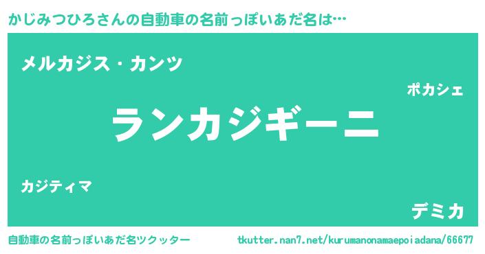 かじみつひろさんの自動車の名前っぽいあだ名は… 『ランカジギーニ』『メルカジス・カンツ』『デミカ』 ツクッター #自動車の名前っぽいあだ名ツクッター http://tkutter.nan7.net/kurumanonamaepoiadana/66677/