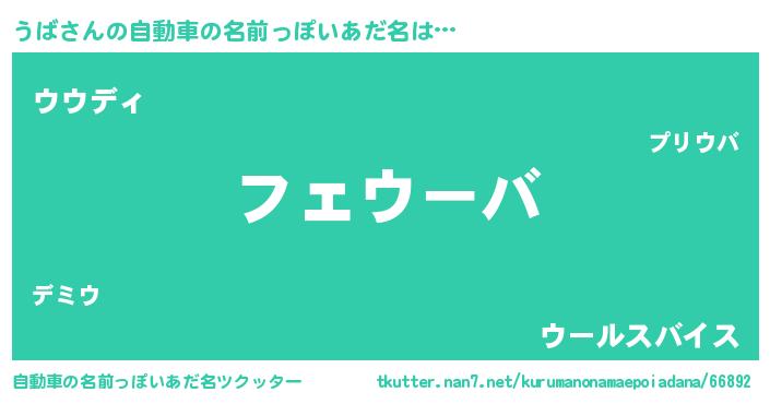 | 意味不明あだ名 | 『住所不定無職うば(93歳)』『ペロリンうば』 |