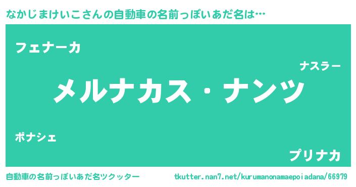 | 男性向けラノベタイトル風あだ名 | 『Re:なかじまけいこから始める異世界生活』 |