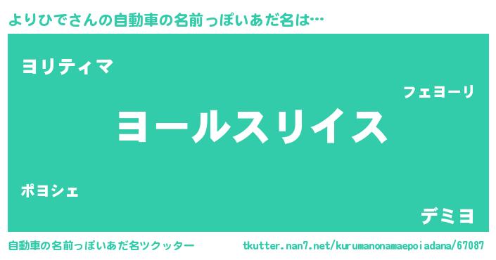 | 男性向けラノベタイトル風あだ名 | 『ヨリヒデスレイヤー』 |
