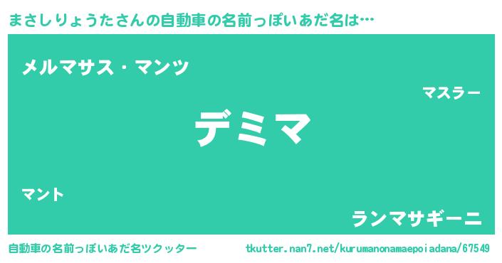 | 胡散臭い通販商品みたいなあだ名 | 『絶対に幸福をもたらす水素水…その名も「まさしりょうた」』 |