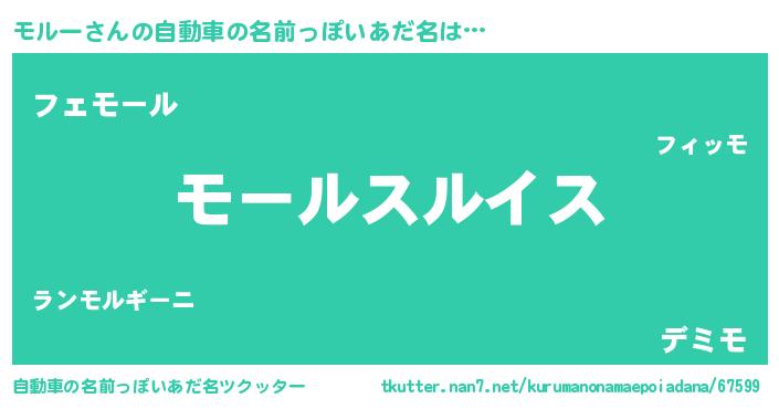 | 男性向けラノベタイトル風あだ名 | 『モルースレイヤー』『緋弾のモルー』 |