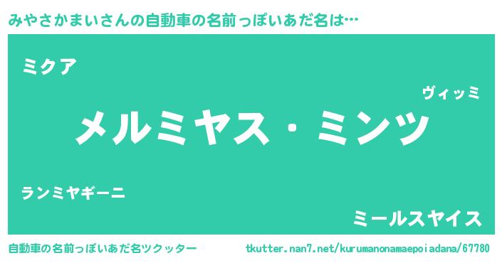 | 意味不明あだ名 | 『自称みやさかまい』 |